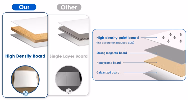 Our high-quality whiteboard provides a smooth and flat writing surface, making it easy to write and wipe, and easy to wipe clean without leaving any stains or marks