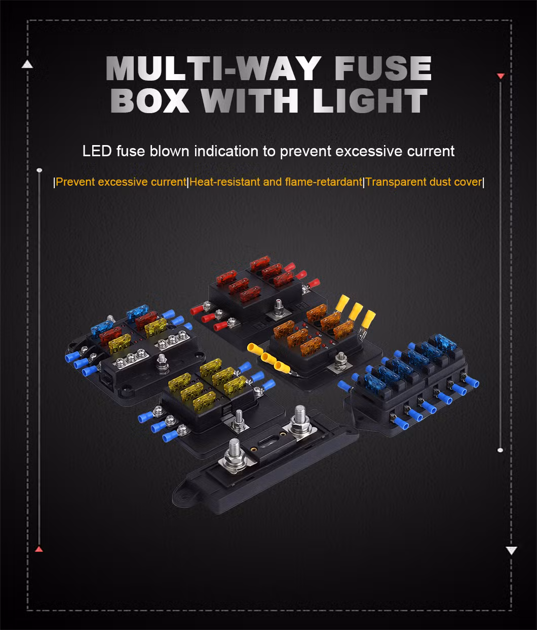 Caja de fusibles de automoción, adecuado para los fusibles de la hoja de tamaño medio.